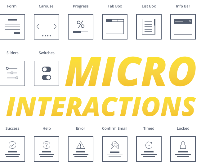 Microinteractions allow you to call out specific component interactions that occur on a screen. You and your team can plan out any dynamic features that exist within the flow instead of just displaying static screens. The type of microinteractions included are: